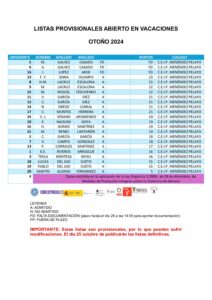 LISTAS PROVISIONALES
